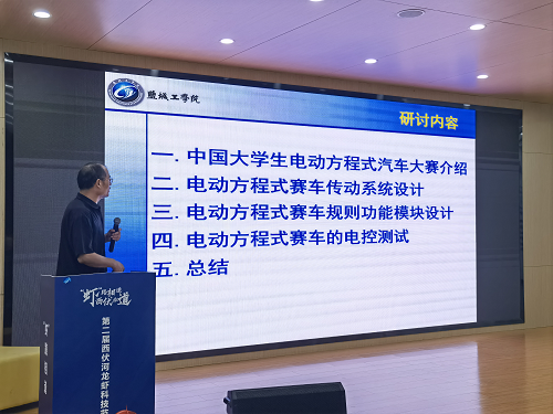 实验中心主任刘基冈做了《基于学科竞赛的大学生创新创业能力培养研究》的报告,他从什么是中国大学生方程式赛车、如何制造出方程式赛车、学科竞赛的创新实践改革三个方面深入介绍,报告内容丰富、生动,引起了现场师生们热烈讨论。张美琪老师做了《电动方程式赛车电控设计》的报告,张老师详细介绍了赛车的电控理论分析、电路设计与仿真、装配测试的。