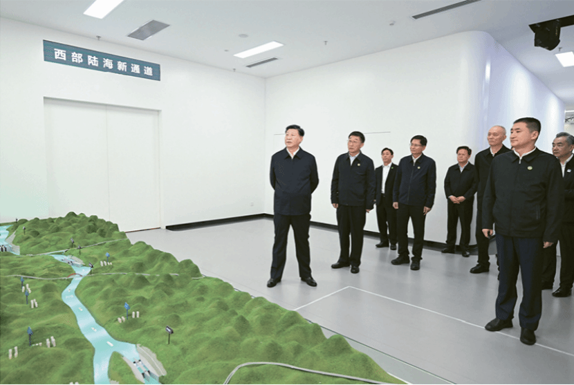 2023年12月14日至15日,中共中央总书记、国家主席、中央军委主席习近平在广西考察。这是14日上午,习近平在南宁市考察中国—东盟信息港股份有限公司,结合平陆运河沙盘听取西部陆海新通道骨干工程建设汇报。 新华社记者 谢环驰/摄